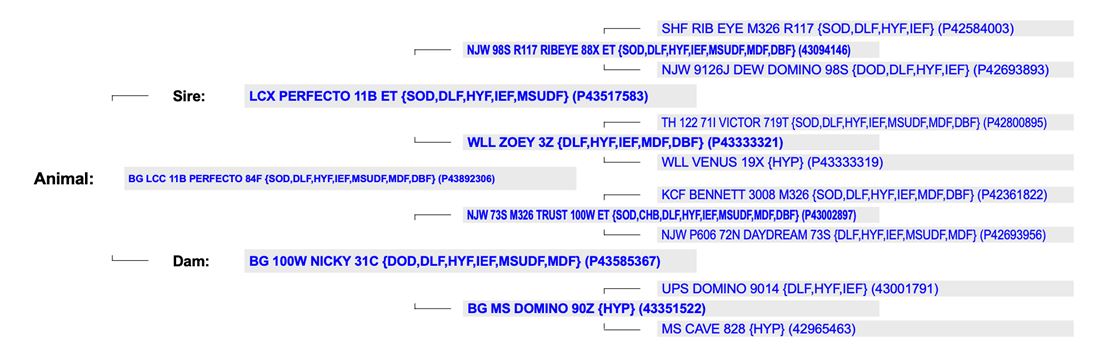 “Perfecto” is the whole package! He brings calving ease, rapid gain and exceptional ribeye and milk. His progeny are long, deep and thick.